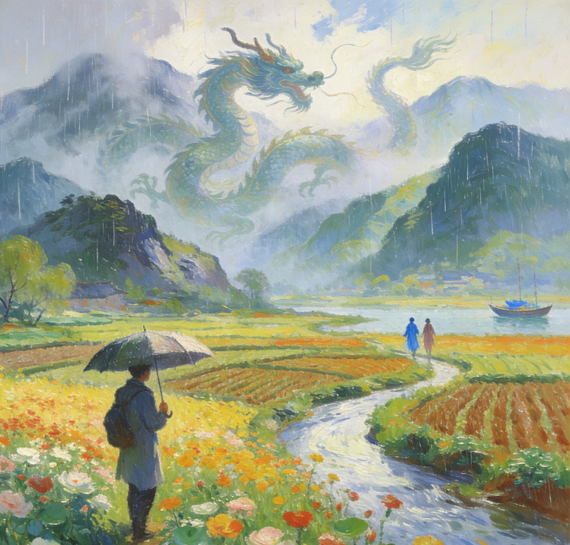 雨在側(cè)、神龍未遠,瀚海闌干。