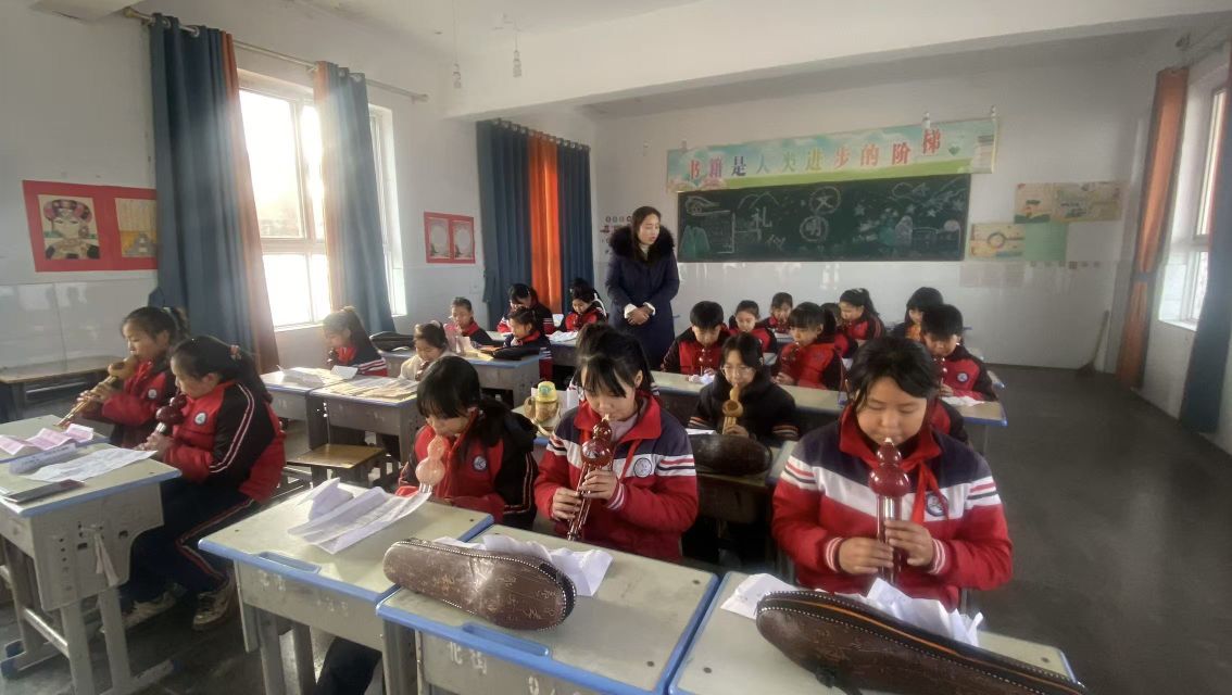 “我們?cè)囍弦槐榘桑 崩蠋熍e起手,教室里立刻安靜下來(lái)。隨著第一個(gè)音符飄出,二十多支葫蘆絲的聲音漸漸融在一起——雖然偶爾有幾個(gè)音符慢了半拍,偶爾有人按孔稍顯用力,但沒人慌亂。吹到“因?yàn)橛心悖瑴嘏怂募尽睍r(shí),不知是誰(shuí)先輕輕跟著唱,接著更多人加入,歌聲混著竹音,在灑滿陽(yáng)光的教室里輕輕回蕩。