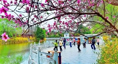 許昌市區處處游園、廣場柳綠花紅,風光怡人,成為市民休閑健身的好去處。 高文勝 攝