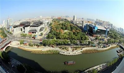 俯瞰許昌市曹魏古城,生態之美與人文之好相結合,構成了一幅城市生活的和美畫面。 牛書培 攝