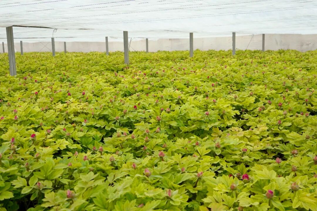 “今年催花牡丹能夠‘搶鮮’上市,關鍵在于對牡丹休眠與生長規律的精準把握和人工干預?!痹摴矩撠熑私榻B,“我們提前兩個月將牡丹植株移入低溫冷庫,模擬其生長必需的冬季低溫休眠期,移出冷庫后,恰好遇上了連續的降雨天氣,適宜的溫度與充沛的雨水,為牡丹的快速生長創造了極為有利的條件,使花期提前至11月?!?