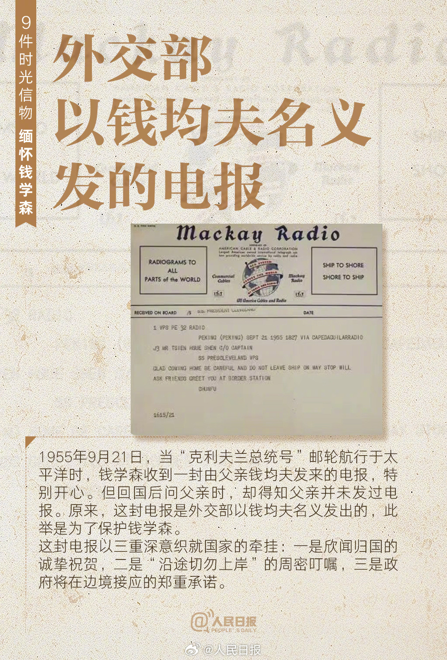 寫著“Nothing is final!!!”的論文終稿紙袋,外交部以錢均夫名義發的電報,在發射場穿的翻毛皮靴,“兩彈一星功勛獎章”……70年前,錢學森回國。五年歸國路,十年兩彈成,他是中國航天事業奠基人。今天,錢學森誕辰114周年紀念日,9件時光信物緬懷錢學森↓↓