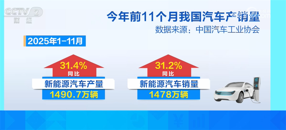 最新數(shù)據(jù)顯示,2025年1—11月,我國汽車產(chǎn)銷分別完成3123.1萬輛和3112.7萬輛,同比分別增長11.9%和11.4%。其中,新能源汽車產(chǎn)銷分別完成1490.7萬輛和1478萬輛,同比分別增長31.4%和31.2%。