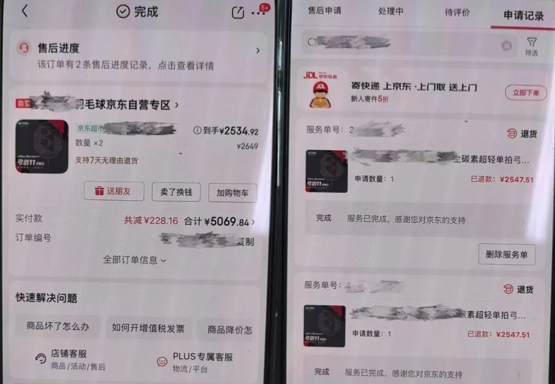 經查,今年3月至今,范某使用3個京東賬戶先后下單48次,購買大量某知名品牌羽毛球拍后,全部通過“七天無理由退貨”申請退貨退款,將其在某網站購買的同款高仿品寄回,共非法獲利12萬余元。