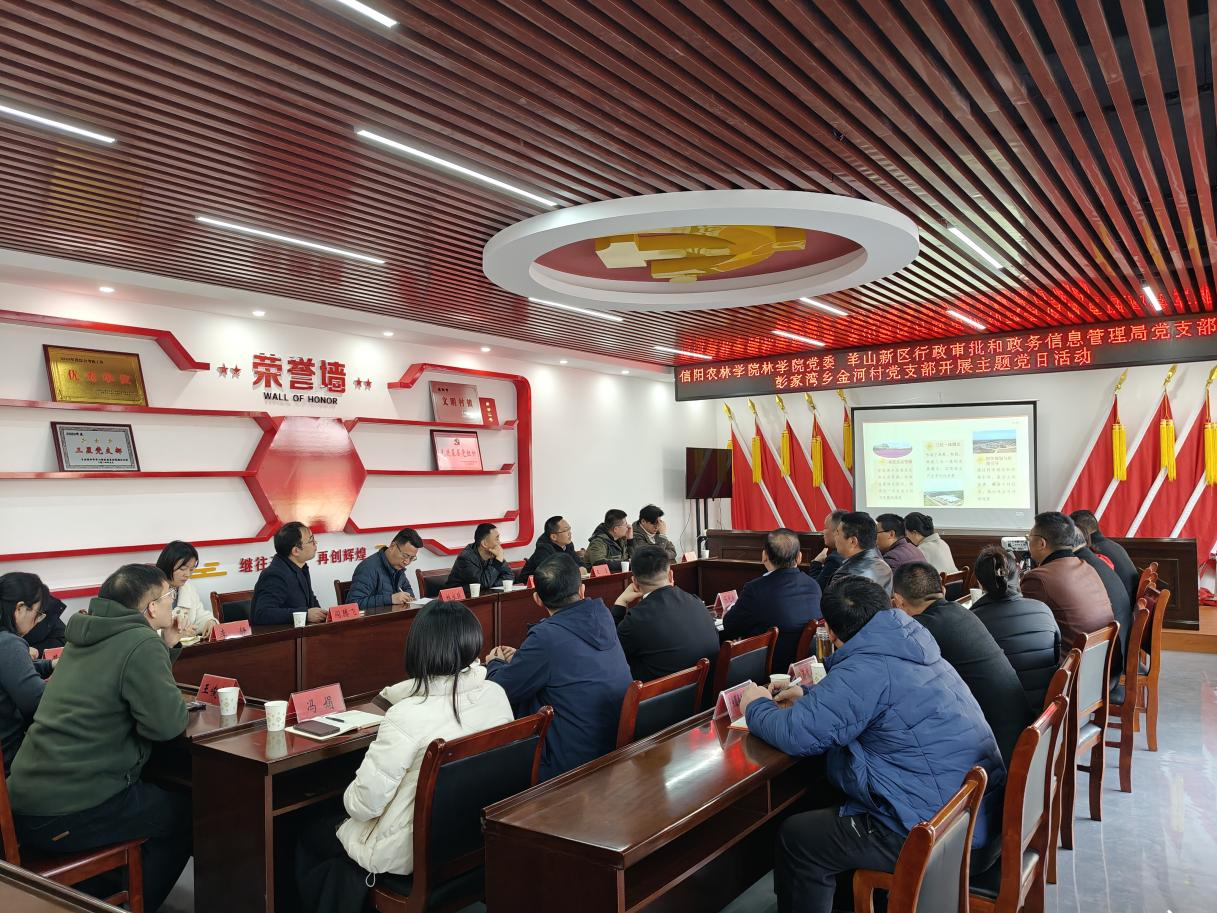 為深化“支部聯(lián)支部”共建機(jī)制,凝聚黨建引領(lǐng)鄉(xiāng)村振興合力,12月10日下午,信陽(yáng)農(nóng)林學(xué)院林學(xué)院黨委、信陽(yáng)市羊山新區(qū)行政審批和政務(wù)信息管理局黨支部與彭家灣鄉(xiāng)金河村黨支部三方聯(lián)動(dòng),在金河村開展“黨建共建助力鄉(xiāng)村振興”專題聯(lián)建活動(dòng)。信陽(yáng)農(nóng)林學(xué)院林學(xué)院黨委書記杜永強(qiáng)、羊山新區(qū)行政審批局黨支部書記、局長(zhǎng)李正權(quán)、彭家灣鄉(xiāng)黨委書記馬光新、金河村“兩委”干部參加座談。