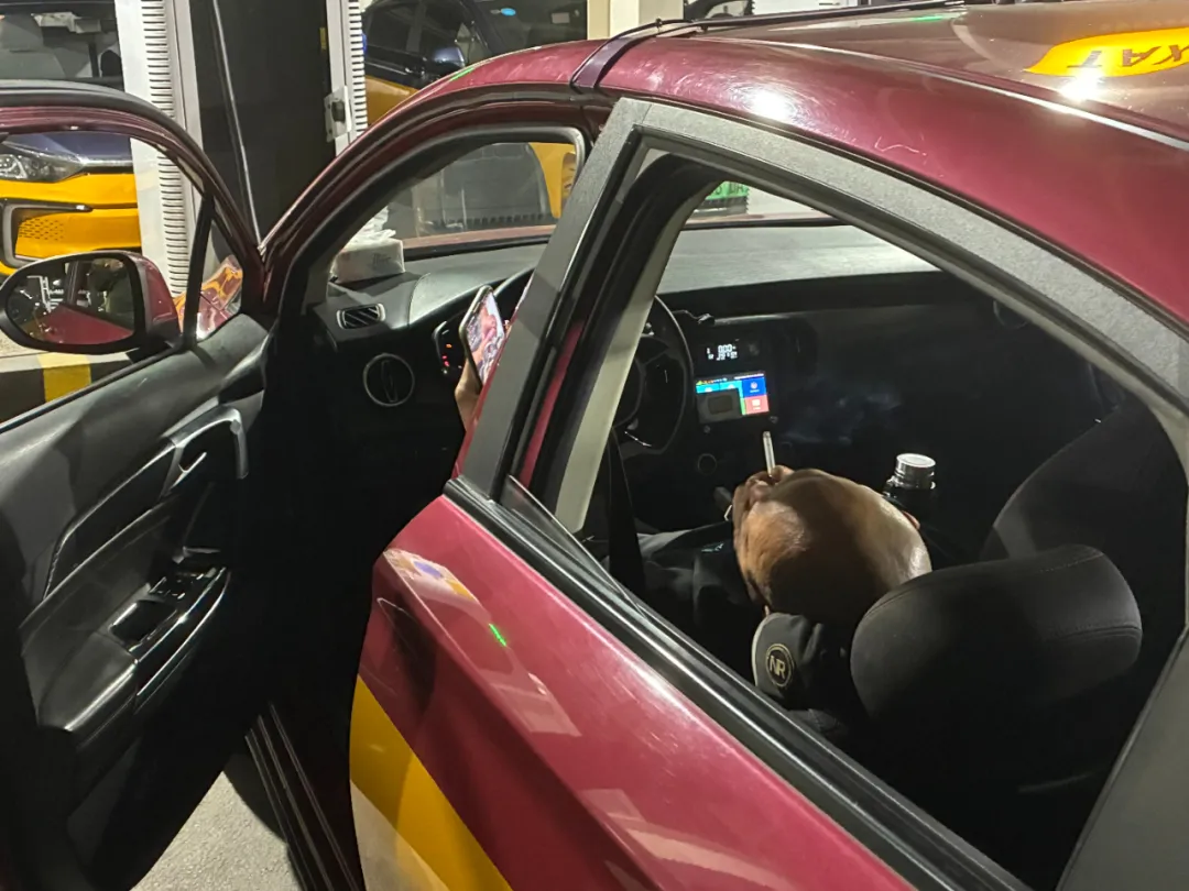 疲憊寫在每個人臉上。有人從后備箱掏出枕頭,有人挨個掃出充電樁上的二維碼后,查看用哪個充電平臺更便宜,有人給車插上充電槍,趕緊點起一支煙——為了避免車上有異味被乘客投訴,很多司機哪怕平時不接單時也不敢抽煙。李翔宇臉色很白,幾乎沒有表情。