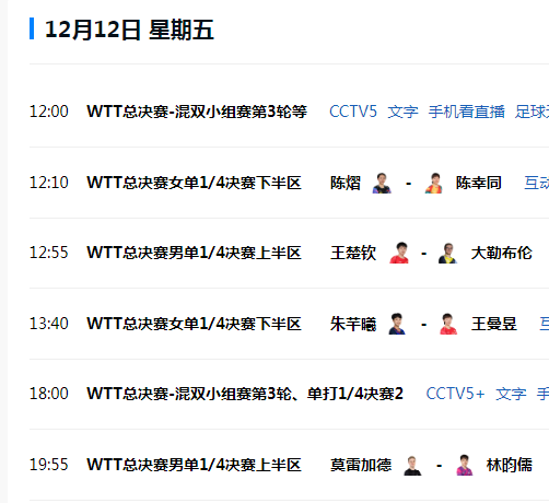 WTT香港總決賽12月12日,將進行單打1/4決賽的較量,陳熠VS陳幸同,王楚欽VS大勒布倫,朱芊曦VS王曼昱,誰能晉級4強?
