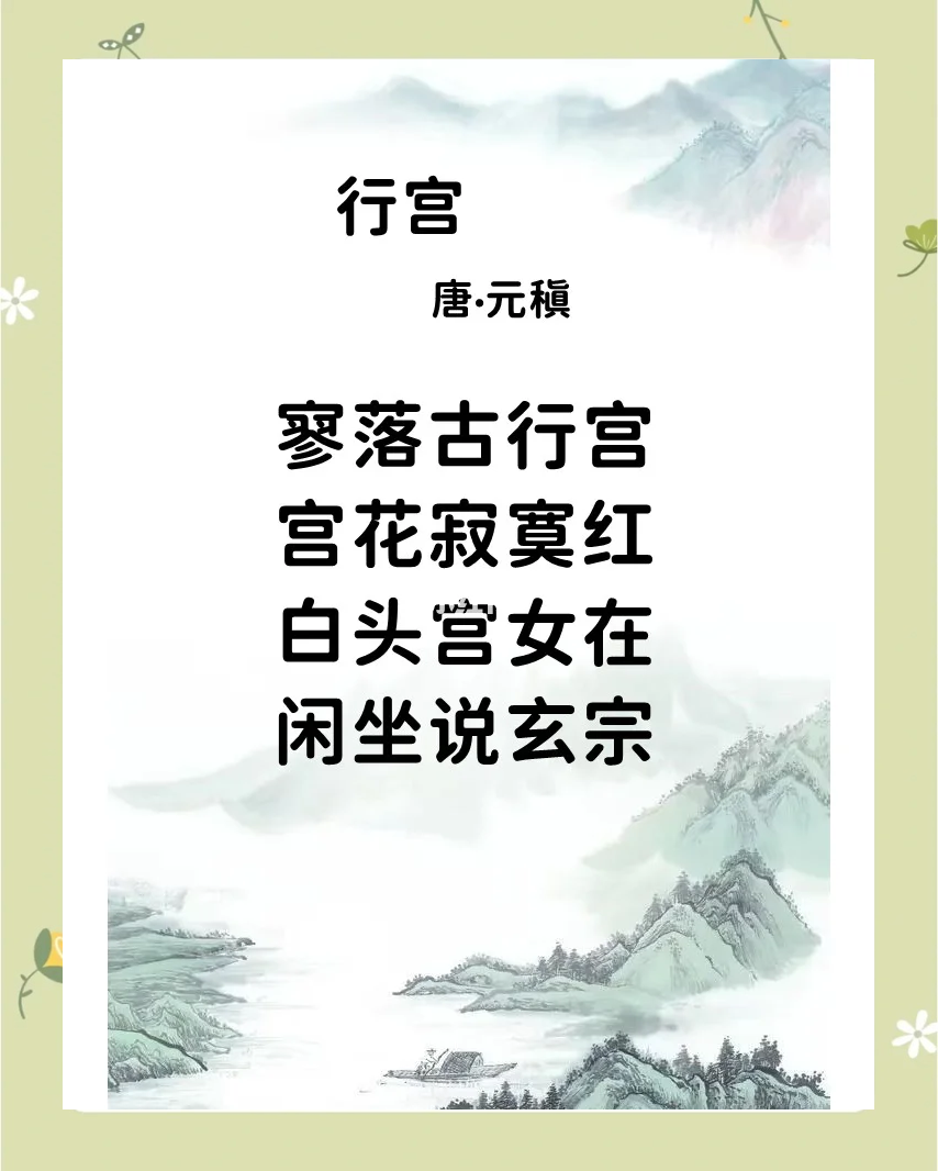 更值得玩味的是元稹本人的位置。他寫作此詩時,大唐帝國已不復往日輝煌,他自己也歷經宦海沉浮。在凝視白頭宮女時,他何嘗不是在凝視自己與時代的命運?宮女們被禁錮在行宮,詩人則被禁錮在歷史的困局中;她們用回憶抵抗遺忘,詩人用詩歌抵抗時間的侵蝕。這種鏡像關系使《行宮》成為了一首元詩:既關于唐代宮女,也關于所有被困在時間中的人。元稹在書寫他人命運的同時,也完成了對自身處境的隱喻性表達。
