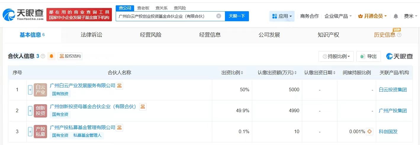 天眼查App顯示,近日,廣州白云產投創業投資基金合伙企業(有限合伙)成立,執行事務合伙人為廣州產投私募基金管理有限公司,出資額1億人民幣,經營范圍為以私募基金從事股權投資、投資管理、資產管理等活動,由廣州白云產業發展服務有限公司、廣州創新投資母基金合伙企業(有限合伙)、廣州產投私募基金管理有限公司共同出資。