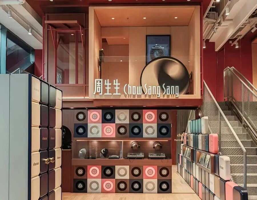 拿周生生來說,有消費者線下發現,周生生會門店提供放大鏡,讓消費者看清楚足金飾品的工藝。它還在線下嘗試更靈活的快閃空間。比如在香港做“心碎糖水鋪”,在成都搞“唱片店”,構建更多豐富的青年文化在地新場域。
