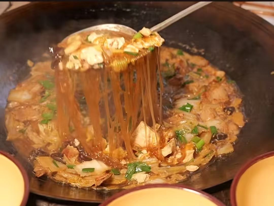 油熱,下肉,刺啦一聲,香氣瞬間炸開,飄出院子,告訴整個村子:已經起鍋做飯了。肉煸到金黃,下蔥姜蒜,等調味料的香味都逼出來,開始下白菜。先下結實的菜幫,翻炒幾下,再下嫩葉,粉條要提前泡軟,豆腐塊煎到兩面金黃,丸子也要早點下……