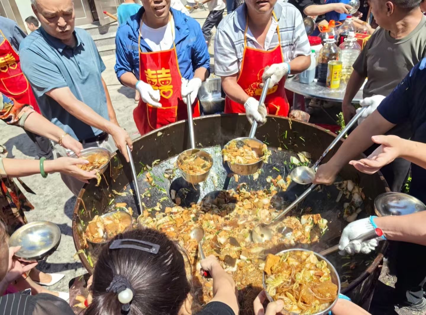 灶里的火從武火改成文火,慢慢地舔著鍋底。鍋里咕嘟咕嘟,像是食材們在竊竊私語,交換彼此的味道。在等待的時間里,鄉親們圍坐在一起,話話家常。而爺爺,則會拉著我,坐在灶火邊的小馬扎上,給我講他年輕時修紅旗渠的故事,講那時候吃的苦,講那時候一鍋野菜湯也能讓大家吃得津津有味。