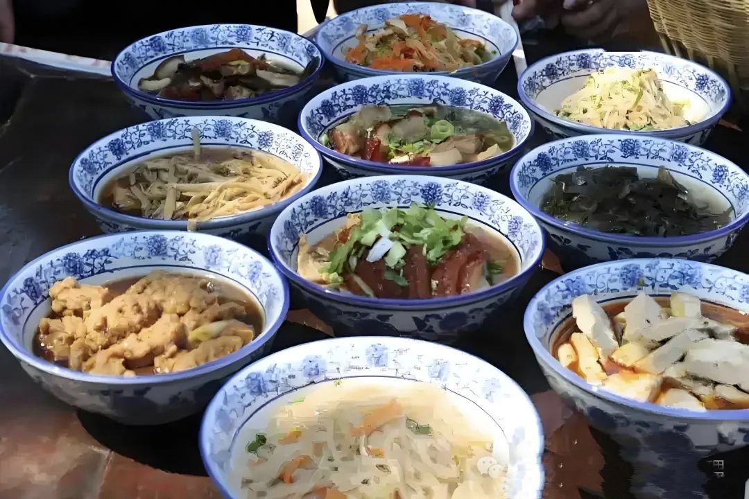 陜州十碗席每道菜都有美好寓意,如紅扣碗、白扣碗代表老父老母,小酥肉、亂雜肉代表長(zhǎng)子、次子等,隱喻三世同堂、十全十美。 陜州十碗席使用八仙桌,椅凳擺放,長(zhǎng)幼有序,主位為兩把椅子,左右為長(zhǎng)凳,主位對(duì)面為三條腿圓凳。 菜上齊后,由主賓引菜,即主賓先逐個(gè)菜領(lǐng)著大家吃一遍,所有菜嘗完后大家才可以自由吃。(選自公眾號(hào):我遇見(jiàn)的地理)