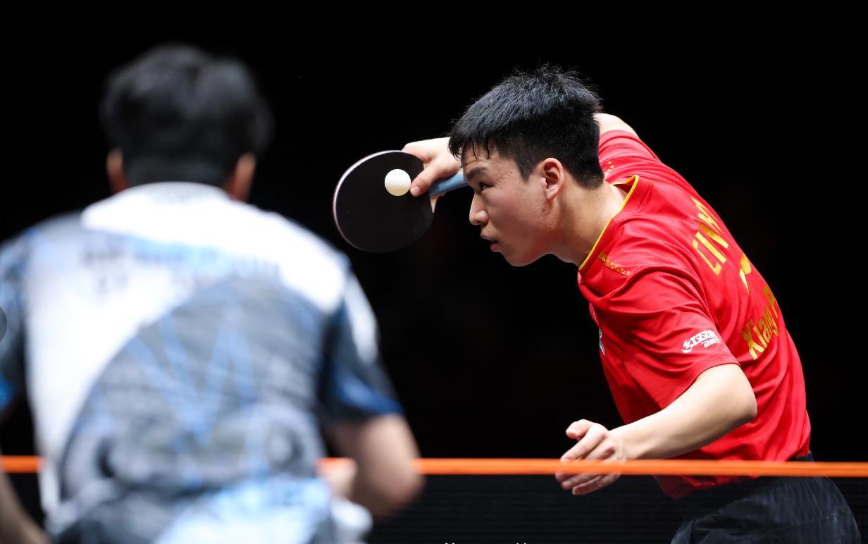 男單的比賽,首輪國乒德比戰,林詩棟以4比0(15-13、11-3、11-4、11-9)戰勝梁靖崑晉級。