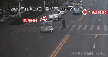在機動車、非機動車混行路段,機動車遇行人正在通過人行橫道,應當停車讓行。駕駛機動車行經人行橫道,不按規定減速、停車、避讓行人的,依法處罰。