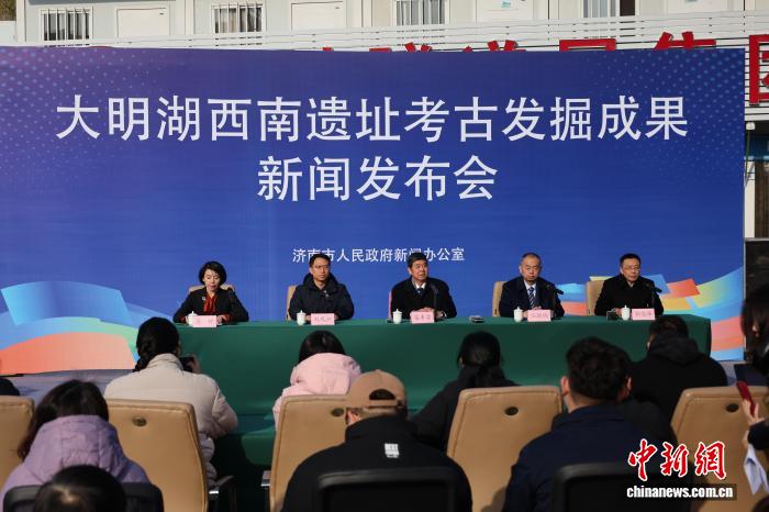 濟南大明湖西南遺址考古發(fā)掘成果新聞發(fā)布會現(xiàn)場。趙曉 攝
