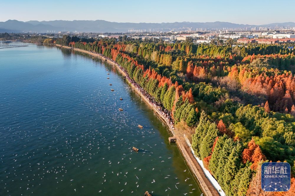近年來,昆明滇池水域的水生態、水環境持續改善,重現“景美、鷗飛、魚躍”的生動畫卷,吸引眾多游客前來打卡。