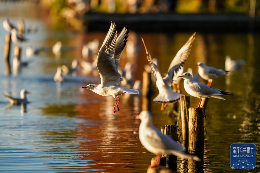 ↑ 12月10日在滇池畔的星海半島生態濕地拍攝的紅嘴鷗。