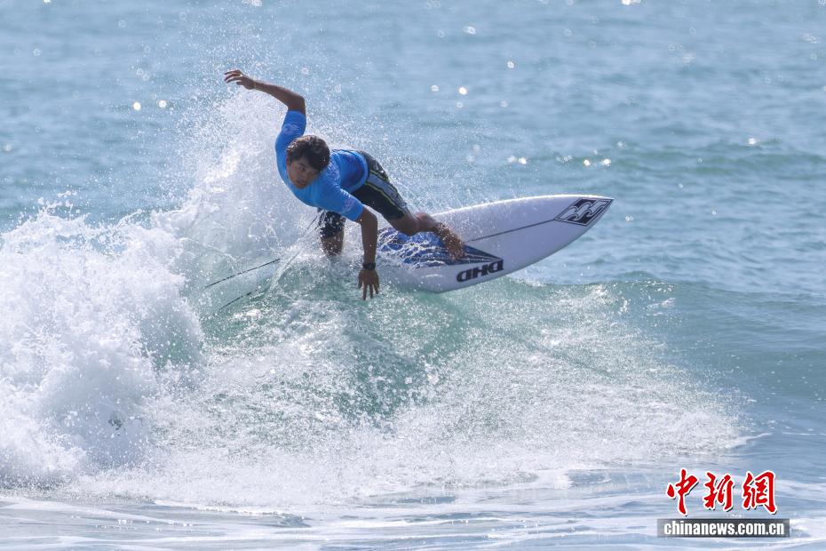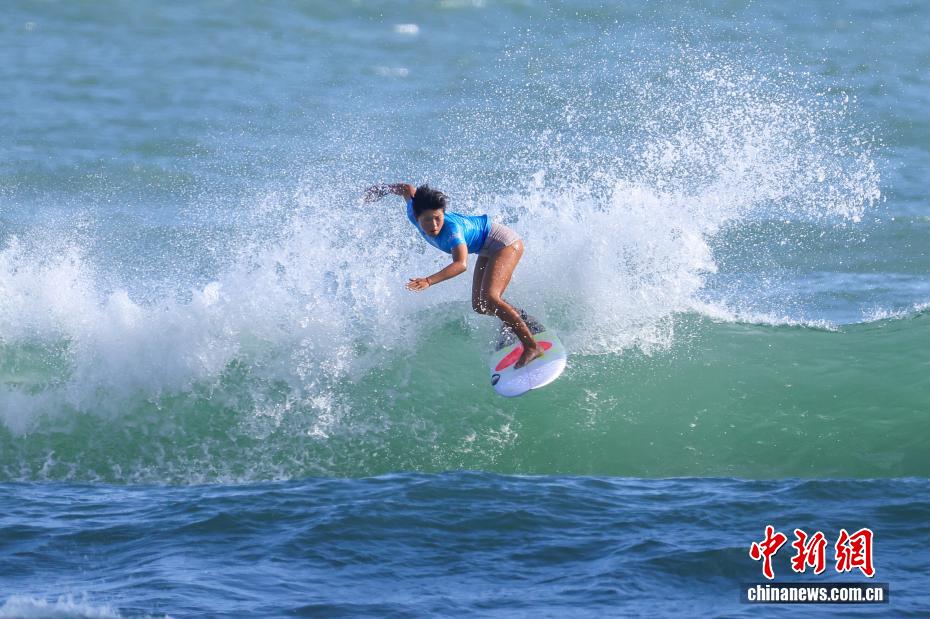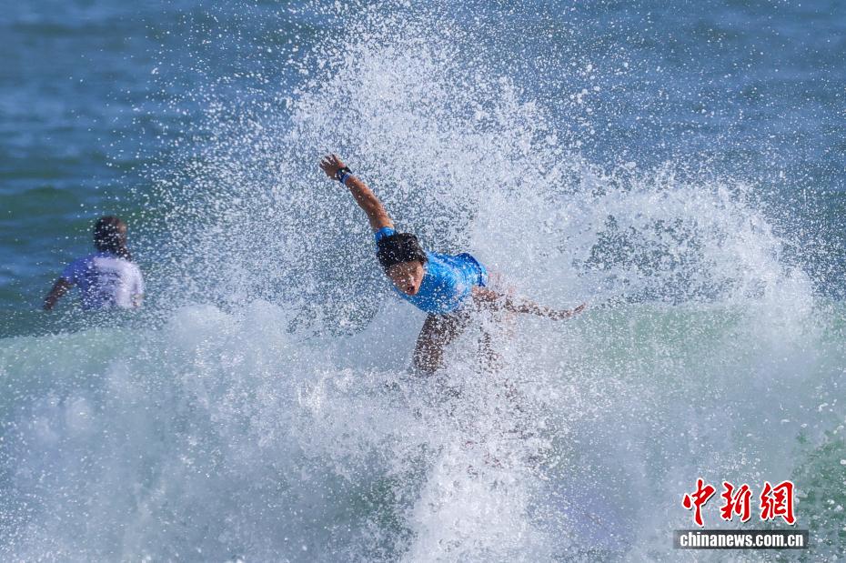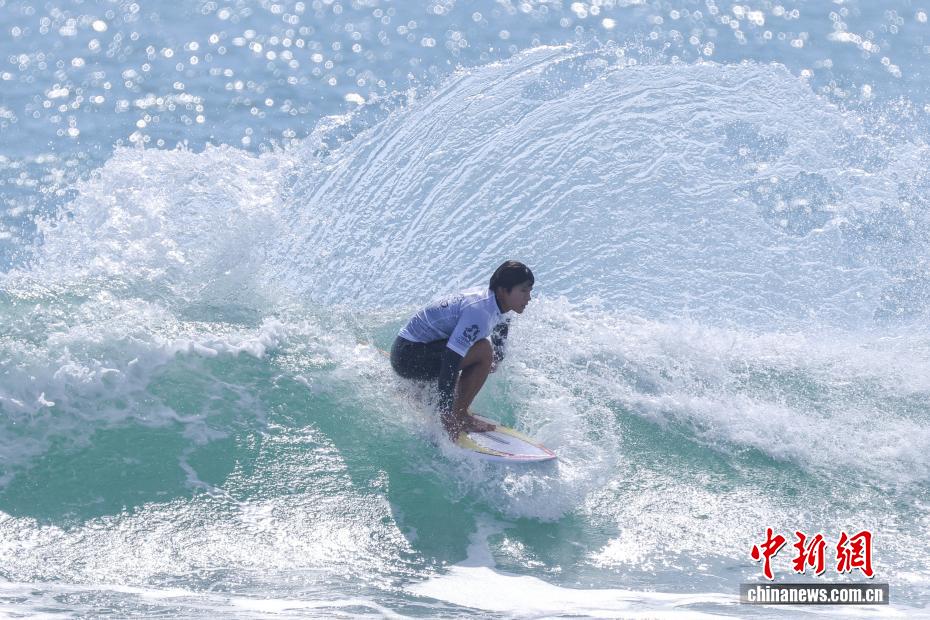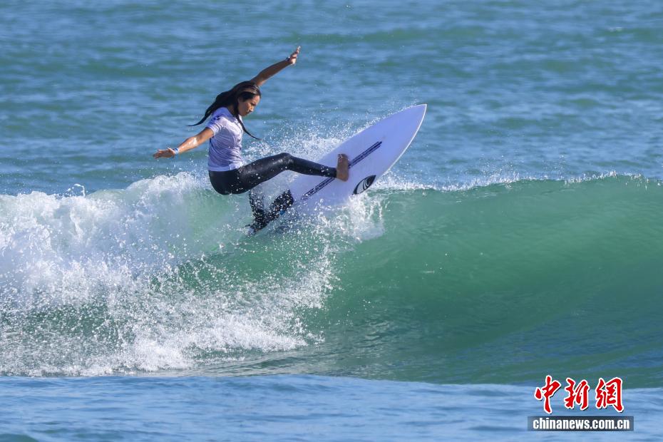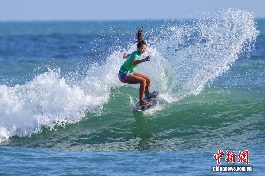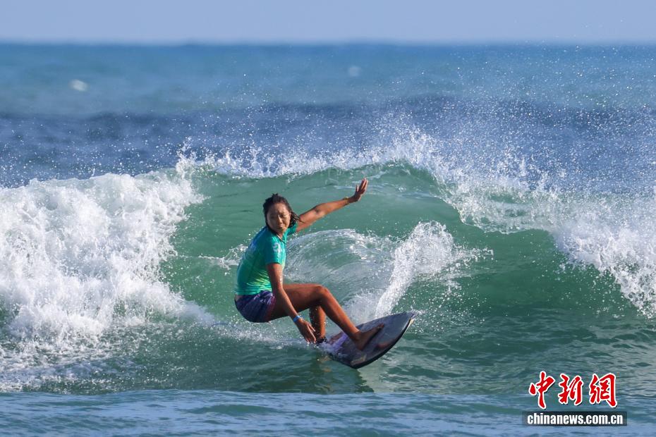 12月11日,2025世界沖浪聯盟積分巡回賽在海南省萬寧市日月灣開賽。來自中國、印度尼西亞、韓國、美國、澳大利亞、瑞典、巴西、法國等10余個國家和地區的160余名頂尖沖浪選手參賽。本次比賽聚焦極具觀賞性的短板沖浪,設置男子/女子QS4000和男子/女子JR1000兩大項目。圖為參加女子職業青少年組的選手在比賽中。中新社記者駱云飛攝