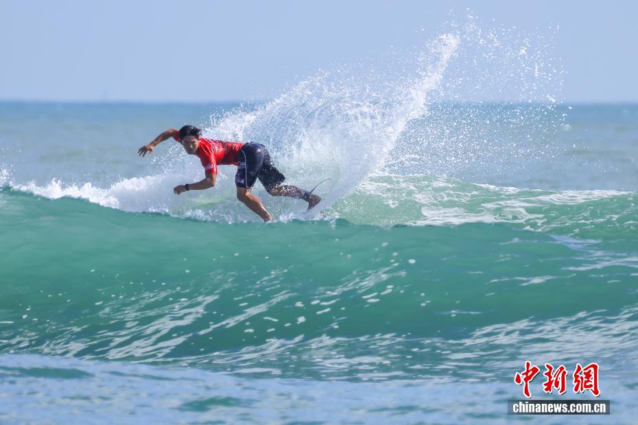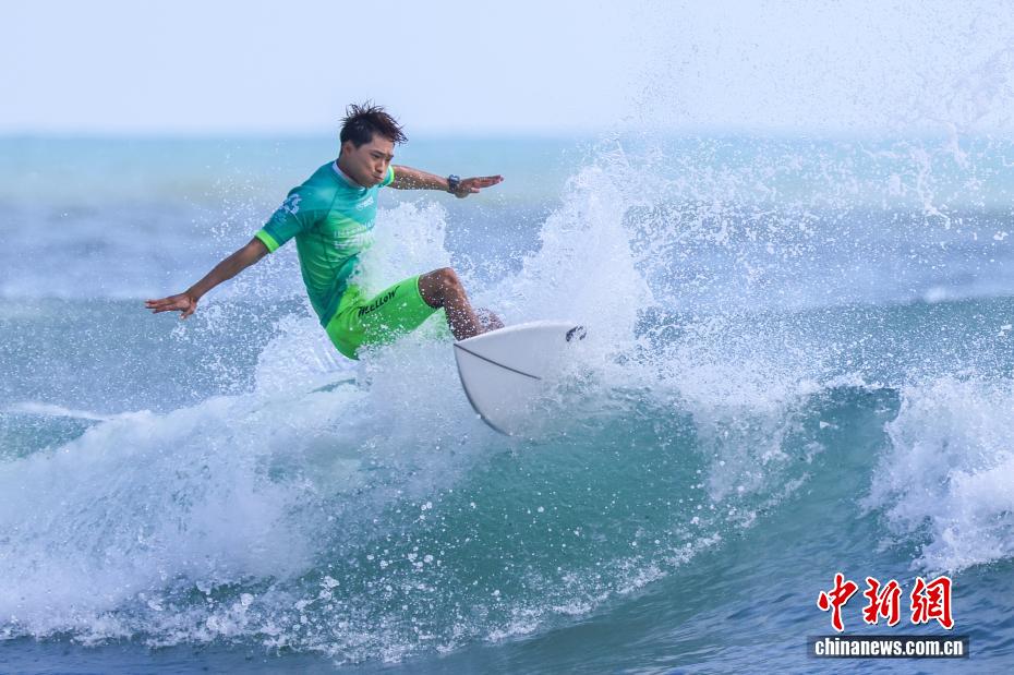 12月11日,2025世界沖浪聯盟積分巡回賽在海南省萬寧市日月灣開賽。來自中國、印度尼西亞、韓國、美國、澳大利亞、瑞典、巴西、法國等10余個國家和地區的160余名頂尖沖浪選手參賽。本次比賽聚焦極具觀賞性的短板沖浪,設置男子/女子QS4000和男子/女子JR1000兩大項目。圖為參加男子組的選手在比賽中。中新社記者駱云飛攝