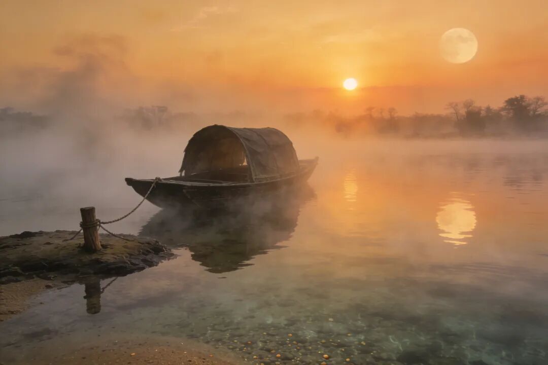 這首詩以江畔暮色為布景,在極簡的意象組合中勾勒出旅人深邃的孤寂與慰藉。開篇“移舟泊煙渚”以??枯p煙籠罩的沙洲,奠定朦朧而漂泊的意境;“日暮客愁新”則直抒胸臆,在晝夜交替時分點出游子愁緒的悄然泛起。后兩句“野曠天低樹,江清月近人”將視野驟然推開:原野蒼茫使天際低垂仿佛貼近樹梢,營造出渺茫的孤獨感;而江心倒映的明月卻溫柔親近,在無邊的寂寥中化作唯一可對話的伴侶。全詩通過天地的曠遠與明月的鄰近這一對比,將無形的客愁化為可觸的畫卷,讓自然的蒼茫與心靈的微光在暮色中達成靜謐的和解,完成了一次孤獨靈魂與天地萬物的詩意對話。