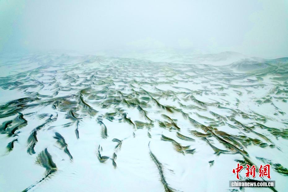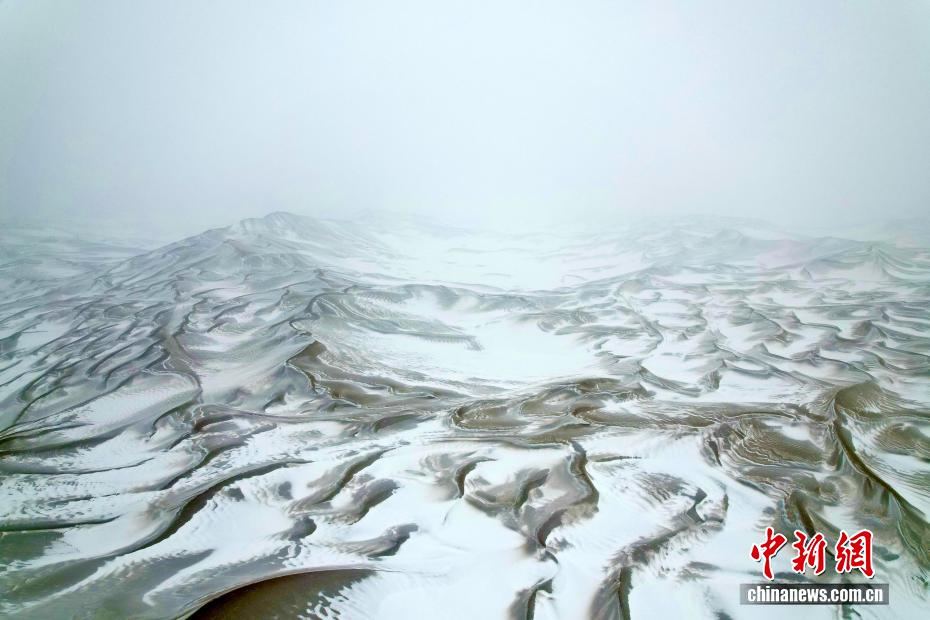 12月11日,新疆鄯善縣境內的庫木塔格沙漠迎來今冬首場降雪,被白雪覆蓋的沙漠蔚為壯觀。