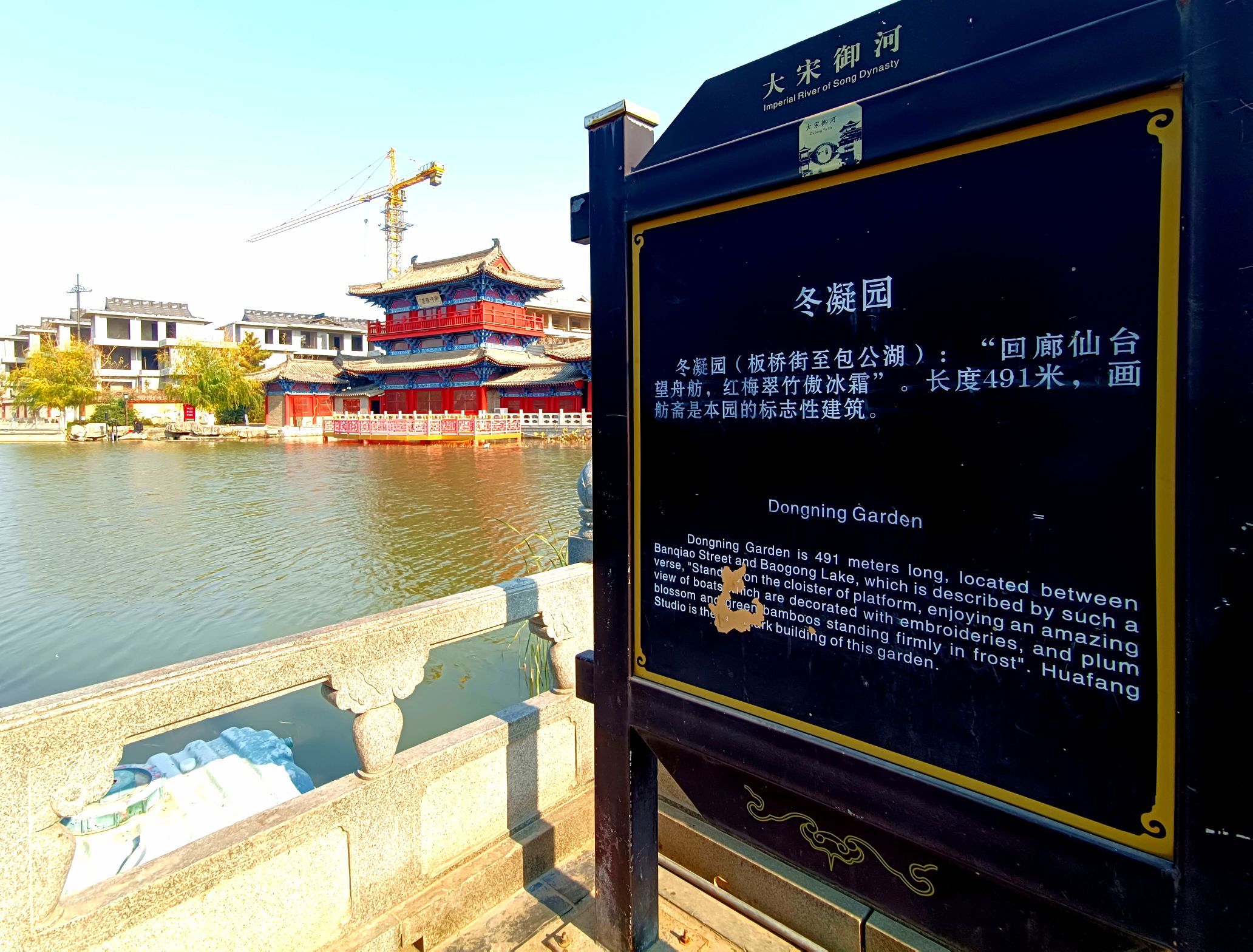 冬凝園(包公湖至板橋街段),以仿宋建筑長(zhǎng)廊、景亭相互銜接形成的古典園林,展現(xiàn)宋都、宋風(fēng)、宋韻為最大特點(diǎn),營造自然山水的城市景觀。于我而言,御河畔的冬凝園,總有著別樣的牽絆——水系未建之時(shí),我家住在園西側(cè)一棟臨街四層樓房(萬善街1號(hào)),2005年因水系工程建設(shè)項(xiàng)目,整棟樓拆遷就搬離此處。如今漫步園中,一面驚嘆城市發(fā)展的日新月異;一面思緒萬千,撿拾著散落的兒時(shí)記憶。