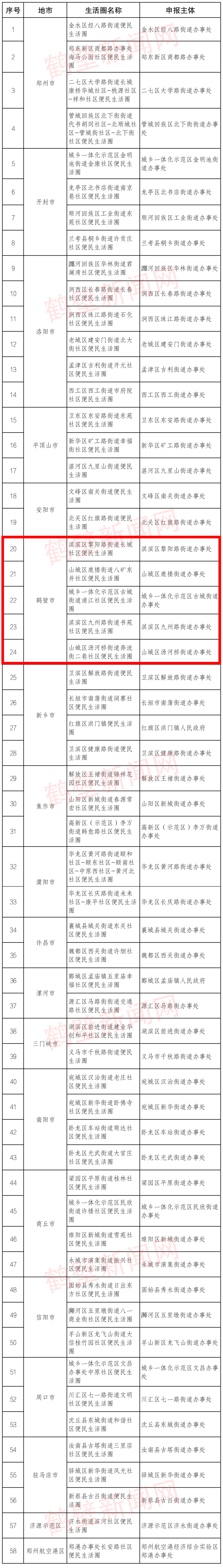 河南省2025年度城市一刻鐘便民生活圈培育名單