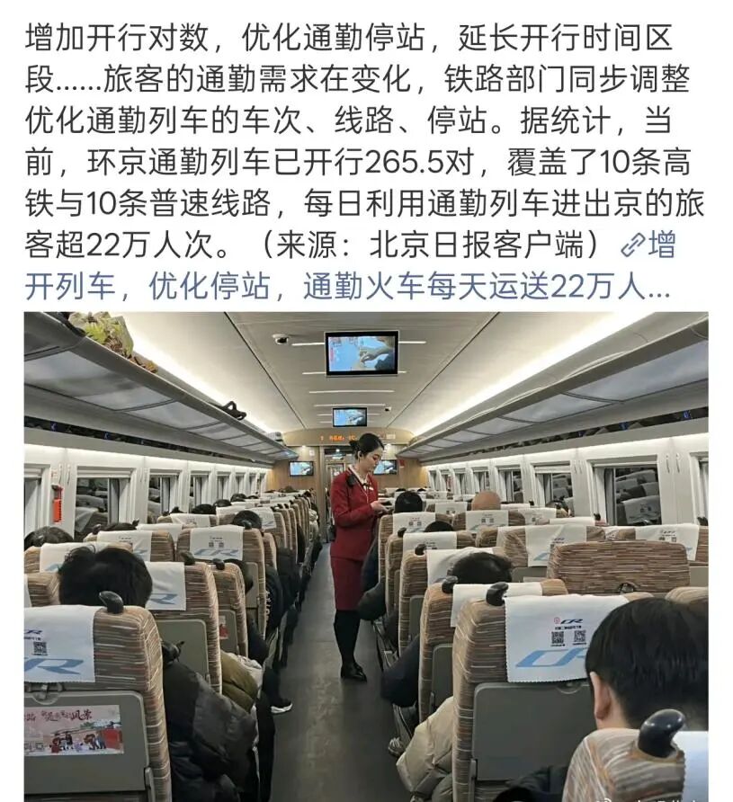 越來越多人正在把高鐵當(dāng)成日常通勤工具。據(jù)《北京日報》統(tǒng)計,截至2025年,環(huán)京通勤列車已開行265.5對,覆蓋10條高鐵線路,每天利用通勤列車進(jìn)出京的旅客超22萬人次,京津冀之間已形成半小時通勤圈。放眼全國,大灣區(qū)、長三角、成渝、武漢等都市圈也紛紛進(jìn)入高鐵通勤時代。