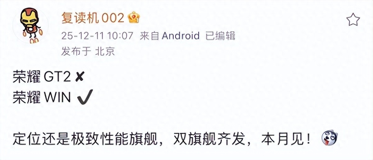 根據該博主曝光的信息和預約頁面上顯示的內容來看,也可以確認此次榮耀WIN系列至少會帶來兩款性能拉滿的新品,與之前曝光的榮耀GT2系列將有標準版和Pro版一樣。作為榮耀旗下主打極致性能的全新系列,“WIN”的命名既打破了此前的“GT”系列命名邏輯,也暗藏“制勝”“旗艦實力”的寓意,推測或將在配置和定位上帶來突破性升級,暗示榮耀在性能旗艦賽道的產品線重塑。