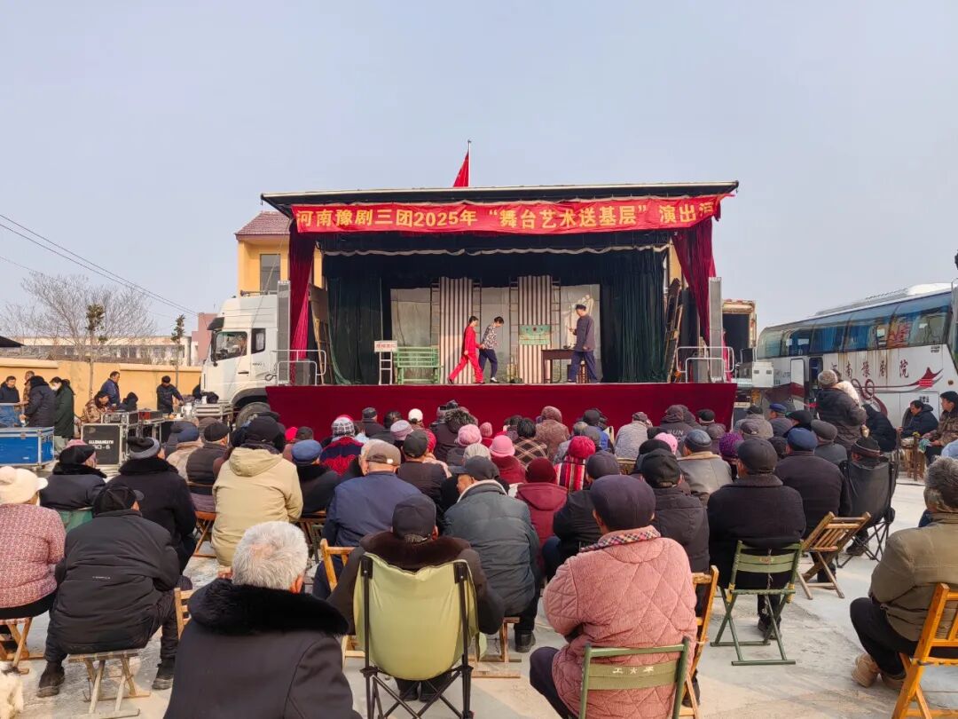 為貫徹文化惠民政策和落實文化幫扶措施,豐富基層群眾的精神文化生活,推動中華優(yōu)秀傳統(tǒng)文化傳承發(fā)展,12月11日,河南省豫劇三團2025年“舞臺藝術(shù)送基層”演出活動走進鄲城縣寧平鎮(zhèn)馬莊行政村,為當(dāng)?shù)卮迕駧砹艘粓龈咚疁?zhǔn)、暖人心的戲曲藝術(shù)盛宴。