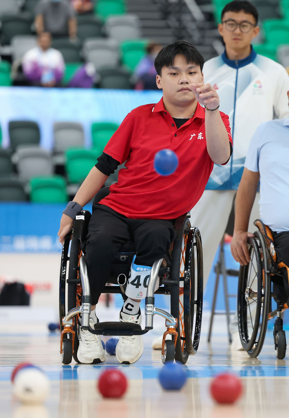 這份收獲來得并不容易。今年10月,廣越想才為了參賽恢復系統訓練。兩個多月的時間里幾乎都是一天三練,每天訓練八九個小時,努力讓自己的競技水平回歸到穩定的狀態。而在此之前,他把幾乎全部精力都投入到了工作當中——他成為了廣州市社會福利院的一名體育老師,帶領16名學生專門進行硬地滾球訓練。