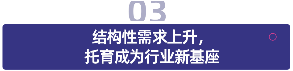 這種變化推動托育行業進入新的定位階段。過去,托育主要承擔「看護功能」,市場化程度高,覆蓋范圍有限;隨著制度前移,托育的教育屬性正在增強。早期發展支持、家庭育兒指導、情緒與社會性發展觀察等內容將逐步成為托育機構的基本服務,使托育從「照護」轉向「發展支持」。