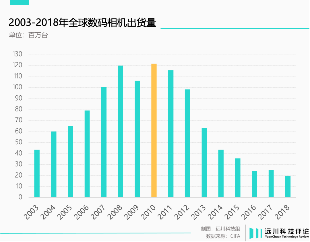 無論相機在專業領域有多么不可取代的優勢,都不能改變攝影市場被手機統治的事實。全球數碼相機出貨量在2010年達峰后一路下滑,此后十年,相機市場規模縮水了90%以上。