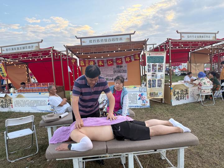 另一邊,吉林省省級非遺代表性項目唐氏理筋手法非遺傳承人唐明全則現場展示唐氏理筋手法,為前來咨詢的游客緩解癥狀,讓大家切實感受到傳統中醫的魅力所在。