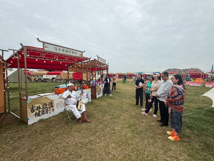 剛剛欣賞過松花石,又被不遠處的馬頭琴聲所吸引。馬頭琴作為蒙古族文化的重要符號,在吉林有著深厚的傳承基礎。國家級非遺代表性項目馬頭琴制作技藝傳承人白蘇古郎在活動啟幕當天,現場為海南當地的市民和游客演奏了《美麗草原我的家》《鴻雁》等作品。他表示,希望通過此次活動更好地展示馬頭琴制作技藝、展示吉林非遺和民族文化的魅力,讓海南的朋友近距離接觸關于馬頭琴的文化,進而促進兩地文化交流和更多領域的合作。