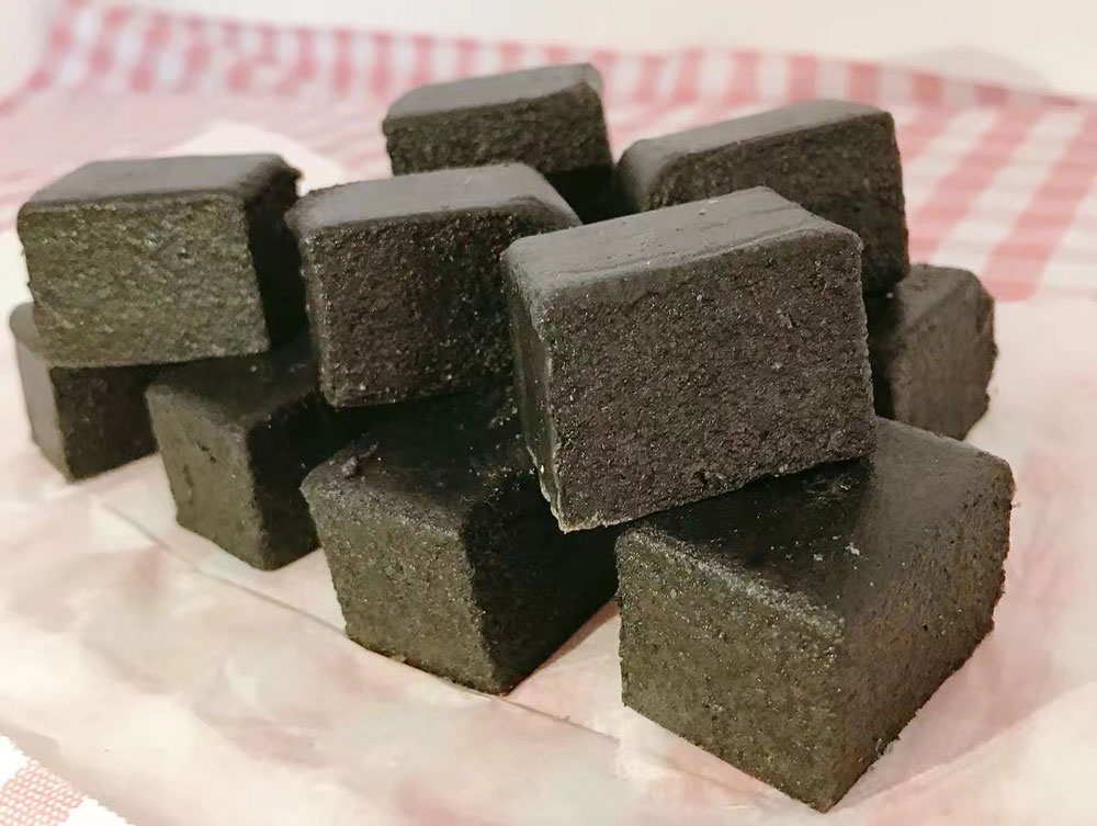 4、將其放到蒸屜上,大火加熱二十五分鐘左右,其凝固成型即可。關火后取出,晾一會兒就可以倒扣出來了。進一步切小塊,就可以享用了,濃香可口。