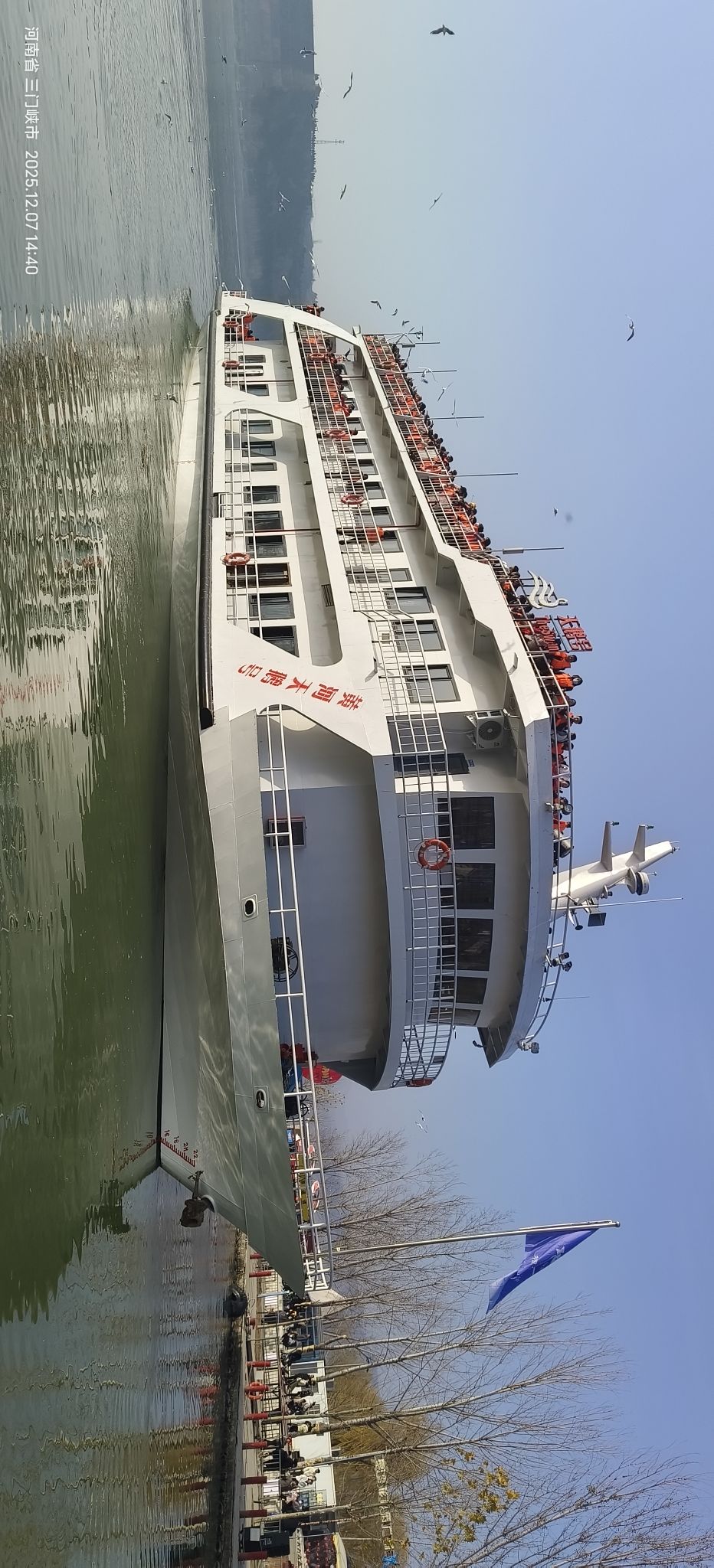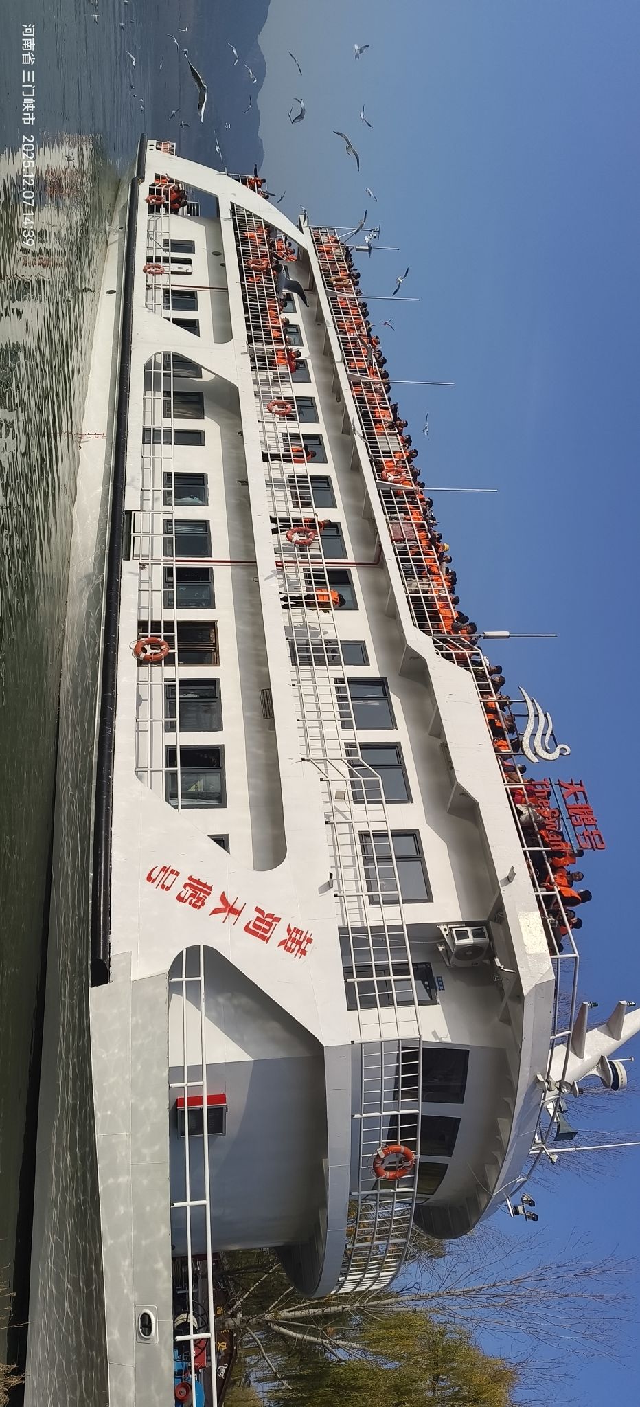 游輪緩緩駛離碼頭,兩岸的風光次第展開。冬日的黃河少了幾分奔騰的洶涌,多了些許溫婉的靜謐,遠處的山巒覆著淺淺的冬色,與澄澈的河水相映成趣。船艙里暖意融融,甲板上卻滿是追著鷗鳥奔跑的游人,橙色的救生衣在白色游輪的映襯下格外鮮亮,隨手一拍都是氛圍感滿滿的畫面。