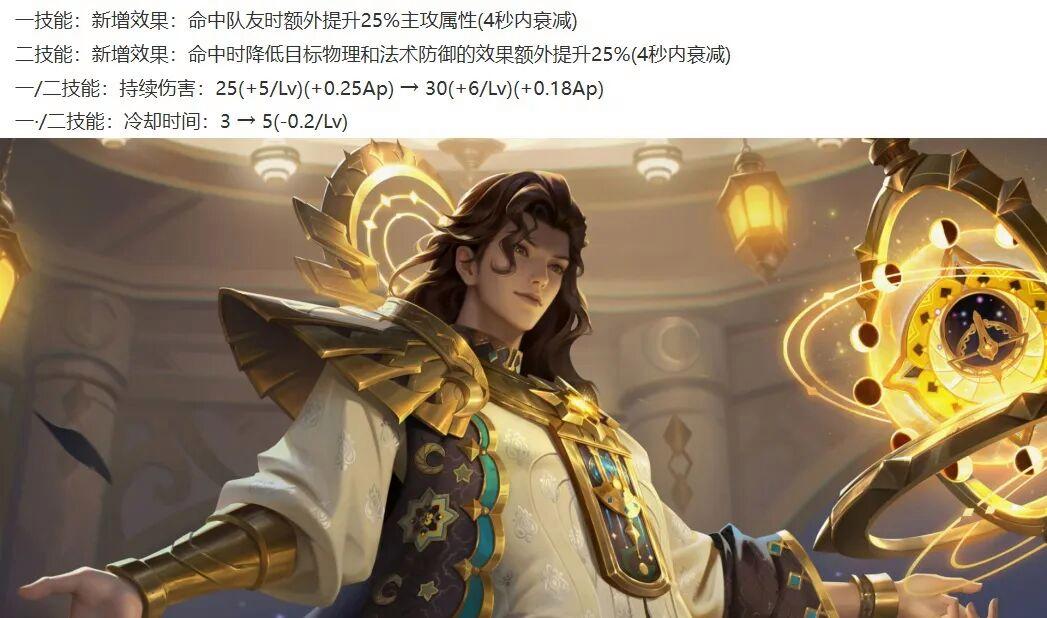 明世隱加強:1技能新增增加目標主攻屬性(持續4秒衰減),2技能新增降低目標防御(持續4秒衰減),1/2技能傷害降低,且CD增加。