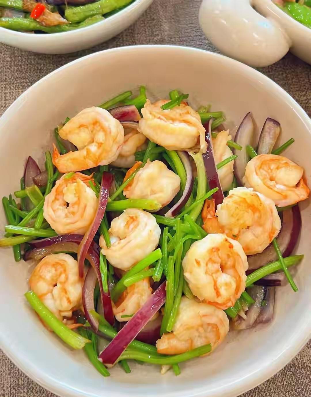 3?? 洋蔥芹菜燒蝦仁:清肝理氣,安神助眠