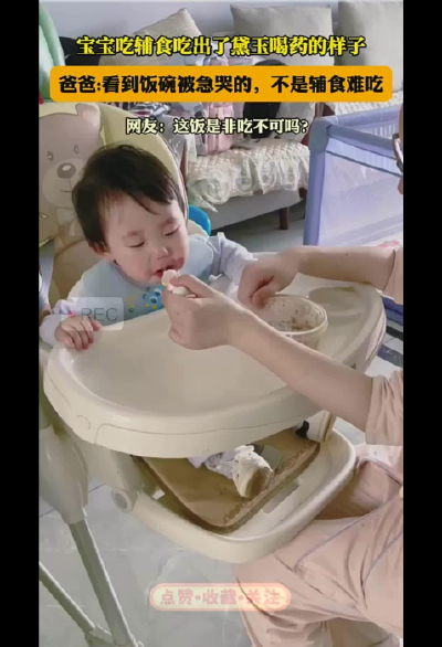 寶寶吃輔食吃出了黛玉喝藥的樣子,爸爸:看到飯碗被急哭的
