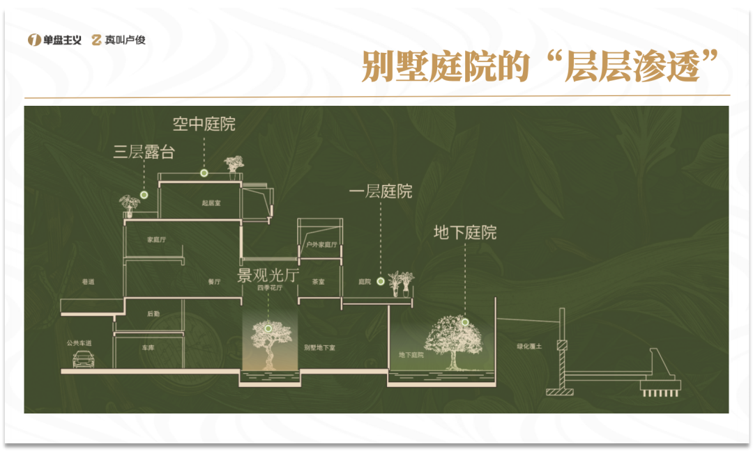但是反觀過去十年的別墅,大部分是政策型創新,核心是為了兌現指標,比如創新院子,是為了得到更多首層溢價,比如創新退臺式,是為了多做可售面積...