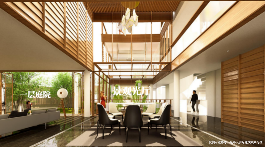 第一,首先伴隨光線從光廳滲透至室內,在525戶型中可對比增加約150平自然采光面