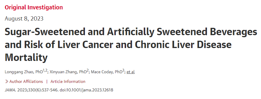 2023年《美國醫(yī)學(xué)會雜志》(JAMA)發(fā)表的研究顯示,常喝含糖飲料,肝癌風險增加!分析顯示,與每個月喝≤3份含糖飲料的人相比,每天至少喝1份含糖飲料的人發(fā)生肝癌的風險增加85%。③