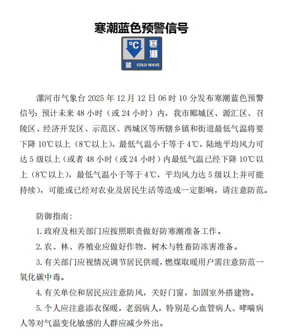 12月12日:陰有大雪,局部暴雪,偏北風4級左右,陣風6—7級,-1℃—8℃;