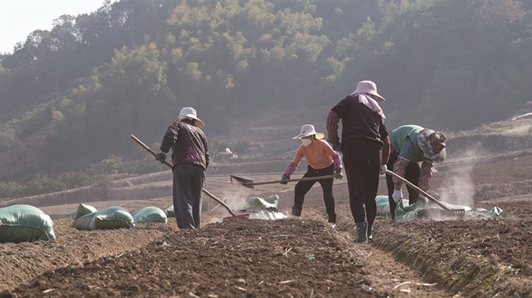 隨著冬季深入,氣溫逐漸走低,越冬作物的田間管理進入關鍵期。近日,在新橋鎮靈岙村的貝母田里,種植戶馮會志正帶領六七位工人,抓緊晴好天氣,為一壟壟田地覆蓋厚厚的有機肥。這場與嚴寒賽跑的 “越冬防護戰” ,關乎地下貝母鱗莖能否安全越冬、健壯生長,也直接關系著今年道地藥材的品質與收成。
