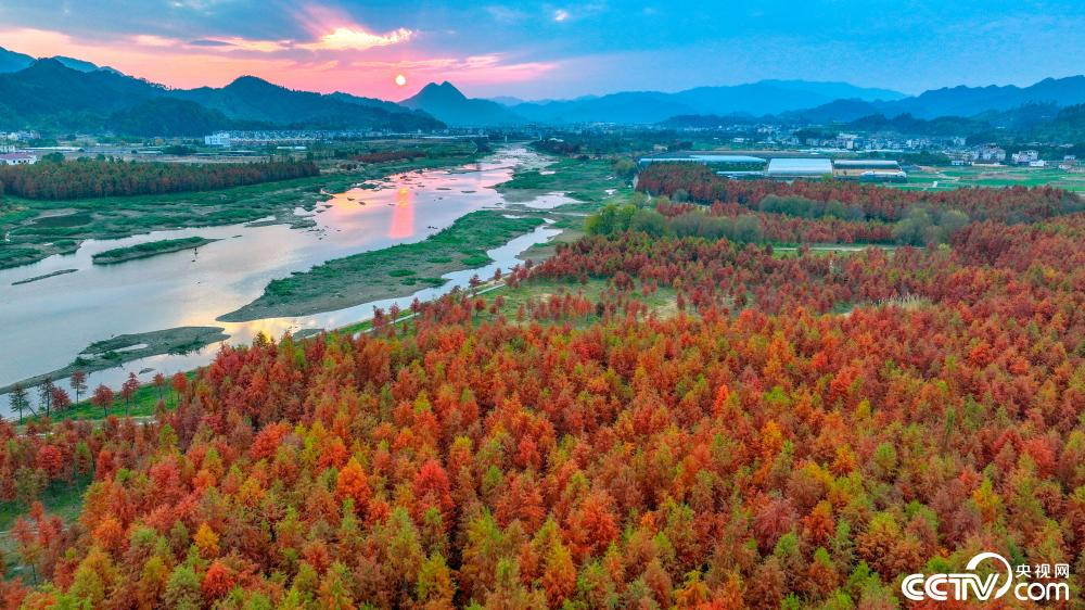 浙江省杭州市淳安縣汾口鎮紅星村,武強溪生態濕地“水上森林”五彩斑斕,景美如畫。
