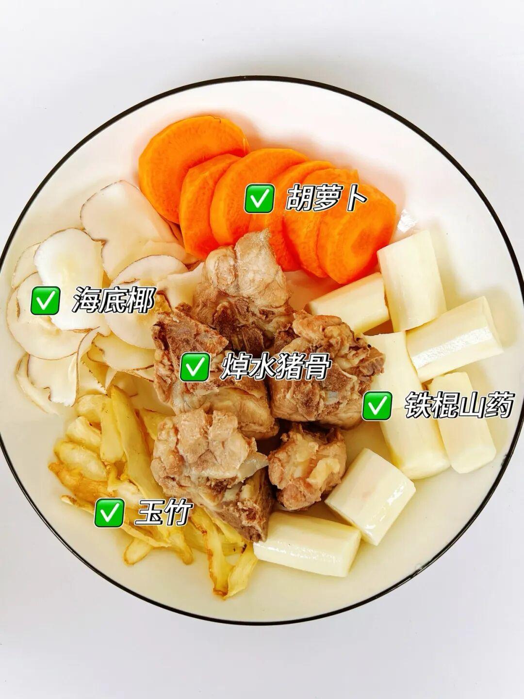 玉竹、海底椰、胡蘿卜、鐵棍山藥、豬骨適