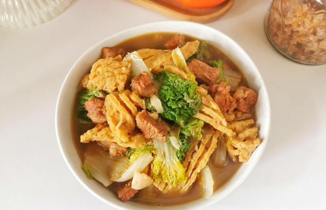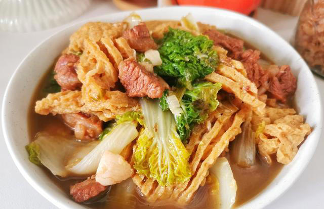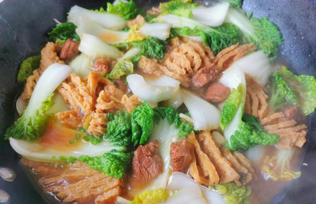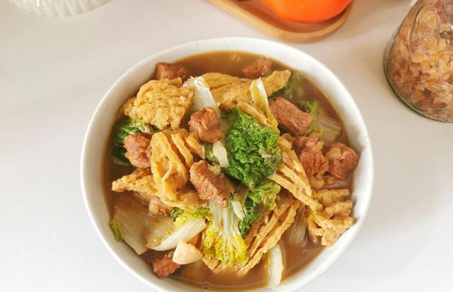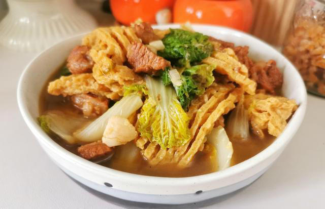 非常簡單的一道菜,但是味道口感超棒,花干吸收了飽滿的湯汁,菊花菜超級鮮美,牛肉嫩而不柴。這道菜集營養價值于一身,既能健脾暖胃,又能為身體補充足夠的能量,讓我們在寒冷的季節里保持健康和活力,輕松抵御冬天的寒冷。