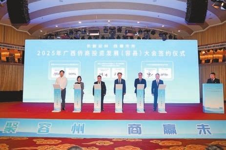 僑鄉優勢為開放合作注入強勁動力。容縣旅居海外的華僑、華人和港澳臺同胞達150多萬人,成為推動發展的重要力量。2025年「僑聚容州·商贏未來」僑商投資發展大會上,來自 17個國家(地區)的24個僑團百餘位僑領僑商齊聚,現場簽約10個重點項目,總投資額達41.415億元,以僑為橋架起通往世界的共贏金橋。